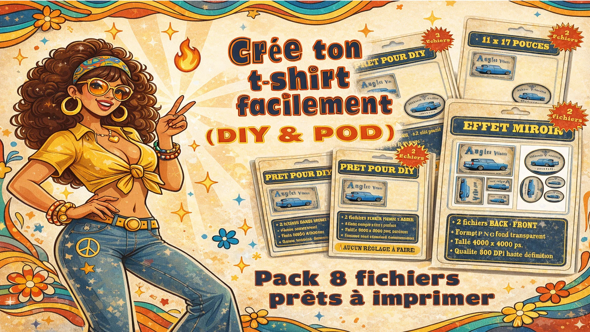 Créer un t-shirt vintage facilement (DIY & POD) – Pack 8 fichiers prêts à imprimer
