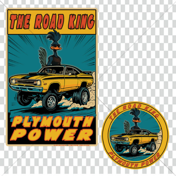 Laissez parler les moteurs et le groove avec ce design explosif !“The Road King – inspire de la 1970 plymouth road runner creer par johnny lightning